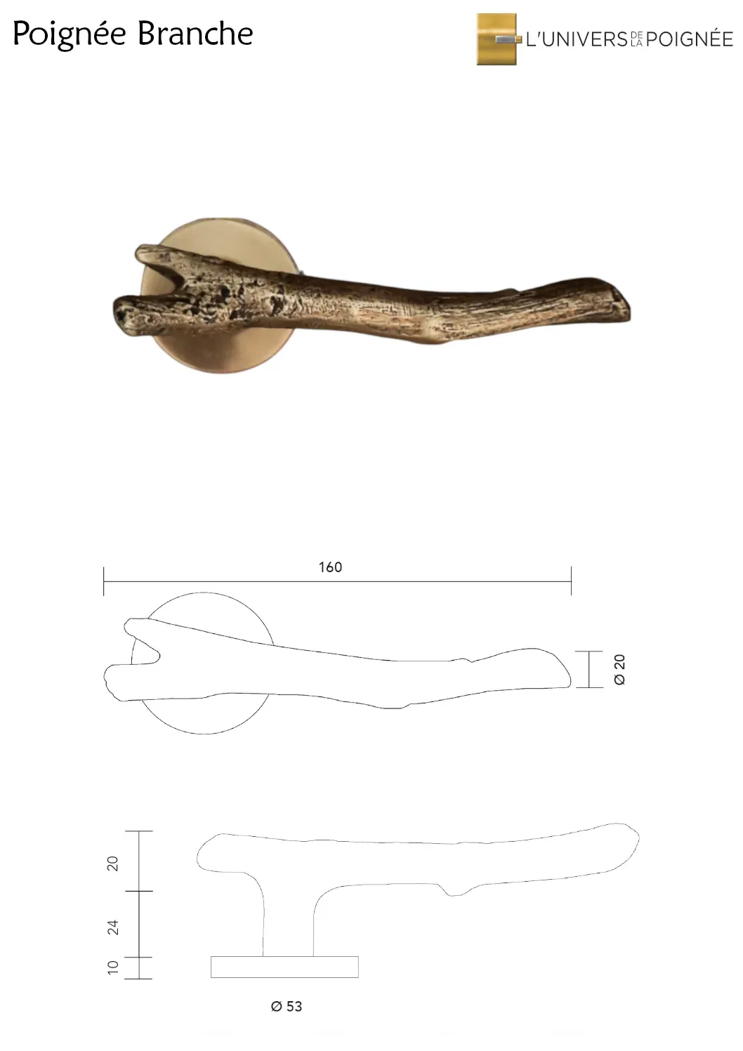 Un véritable hommage à la nature, la Poignée Branche se distingue par sa forme originale et sinueuse, inspirée d’une branche d’arbre. Son design tout en courbes, évoque l’élégance du végétal, créant une atmosphère douce et apaisante, idéale pour une décoration de style campagne ou bohème.